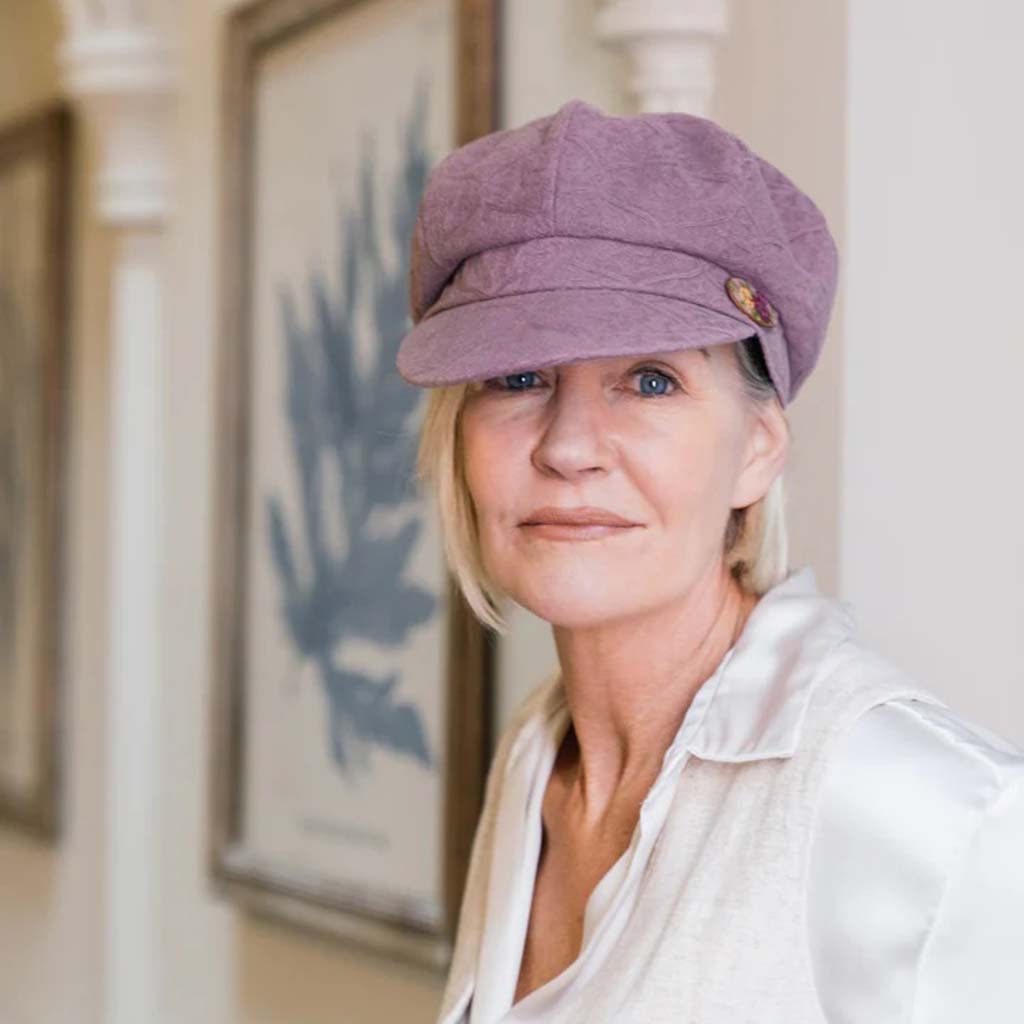 The Lauren baker boy sun hat is a lightweight and stylish choice for warm weather days. Made from breathable damask cotton, this women’s summer baker boy cap is perfect for keeping cool while adding a classic, fashion led finish to your outfit.