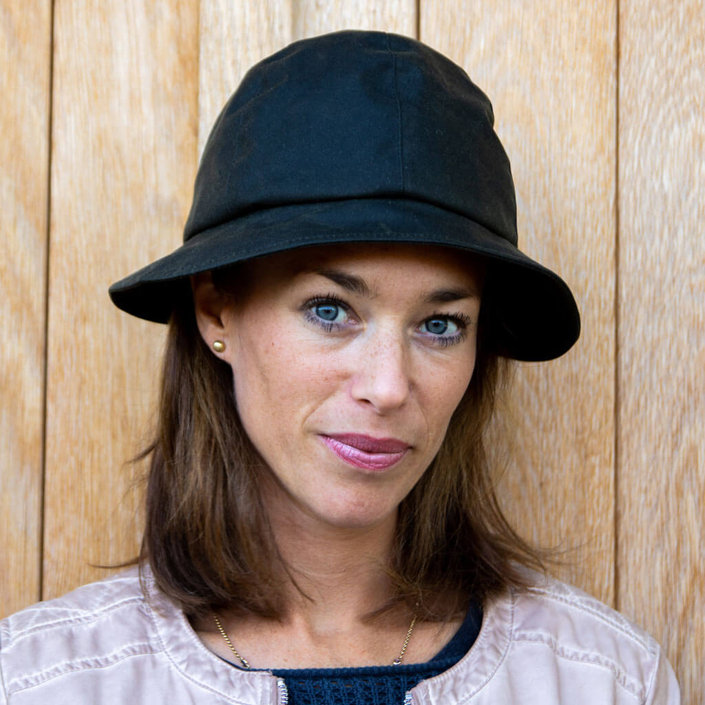 Lifestyle images shows the lady wearing the Ava hat in black which is sadly now out of stock